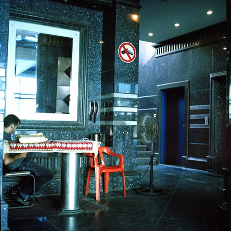 The entrance to an apartment building housing Rozy’s Salon – a gymnasium and beautician’s run by Russian immigrants in Gaza City.