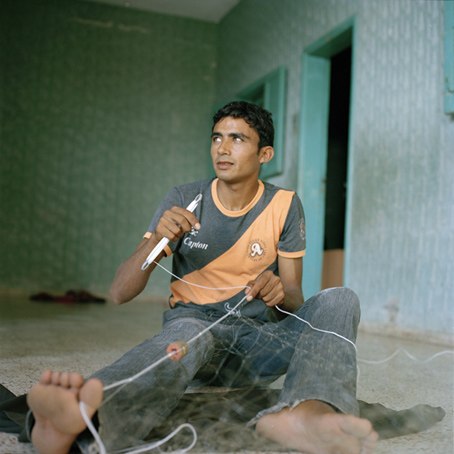 22 year old Hamdi from Beit Lahiya, mending fishing nets. Hamdi wanted to be an English teacher but his family couldn’t afford the university fees.