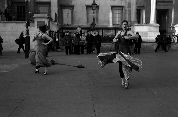 Flamenco street dancers outside the National Portrait Gallery.