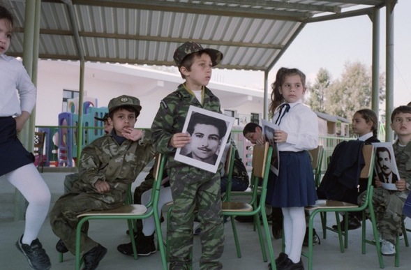 Cypriot children holding photos of EOKA fighters. EOKA targeted the British military as well as pro-British Cypriot civilian installations on the island.