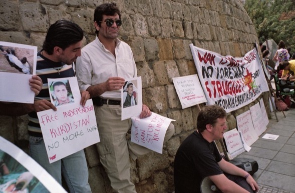 Anti-war protestors gather by the old Venetian Walls of the Cyprus capital, Nicosia, 22 March 2008. There are many Kurdish asylum seekers and refugees in Cyprus who have fled persecution in Syria, Iraq and Turkey, some of which have complained of police violence, illegal arrests and detention by the Cypriot authorities. Since Cyprus’ entry into the European Union in May 2004 it has been reviewing its immigration procedures.